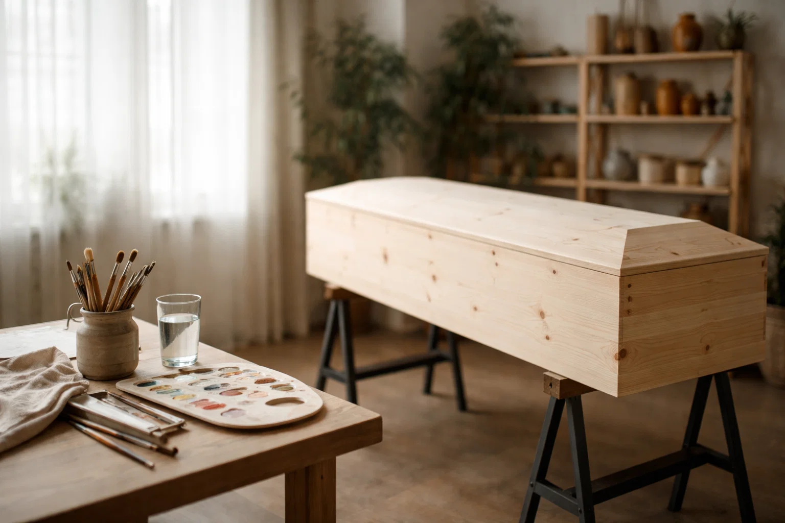 Gestalten Sie den Sarg mit Symbolen, Farben oder Botschaften, die zum Leben des Verstorbenen passen.